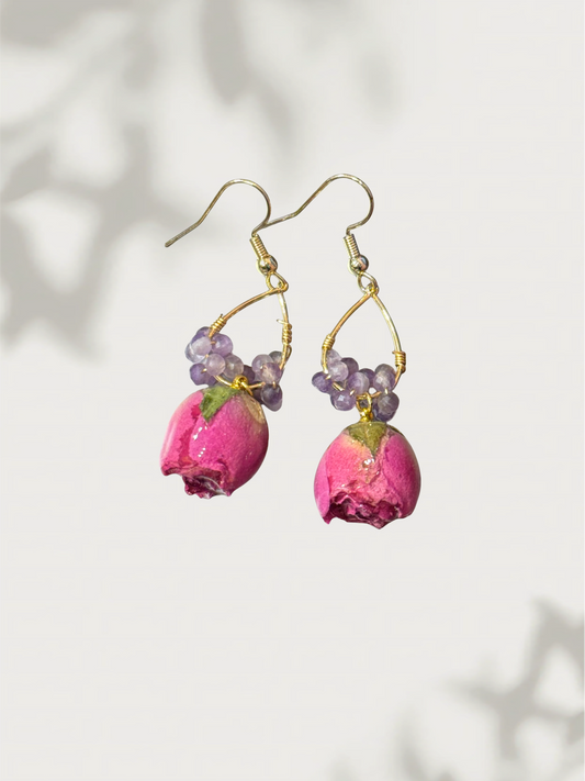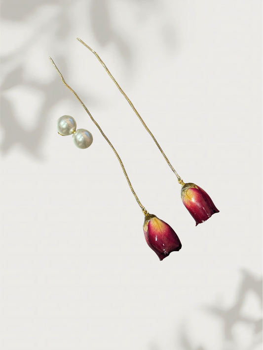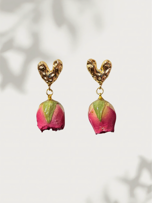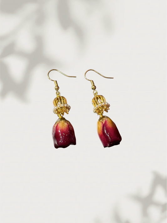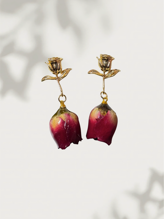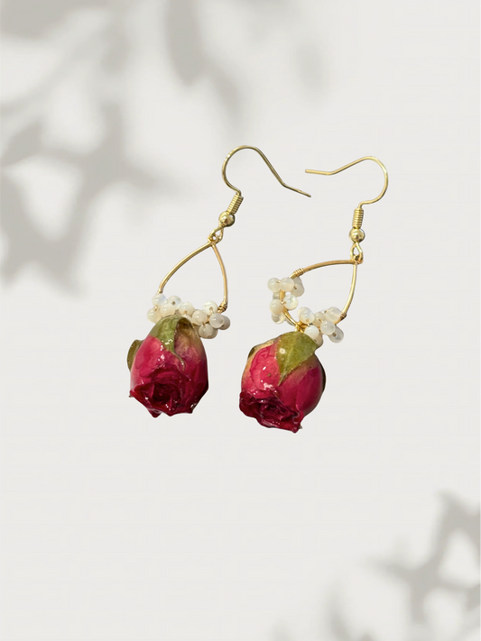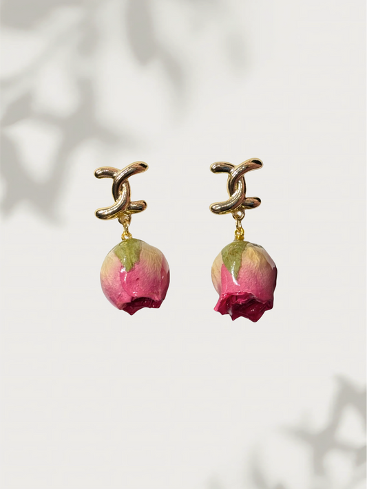 Vine Design Elegance: Dried Roses Flower Shape Earrings