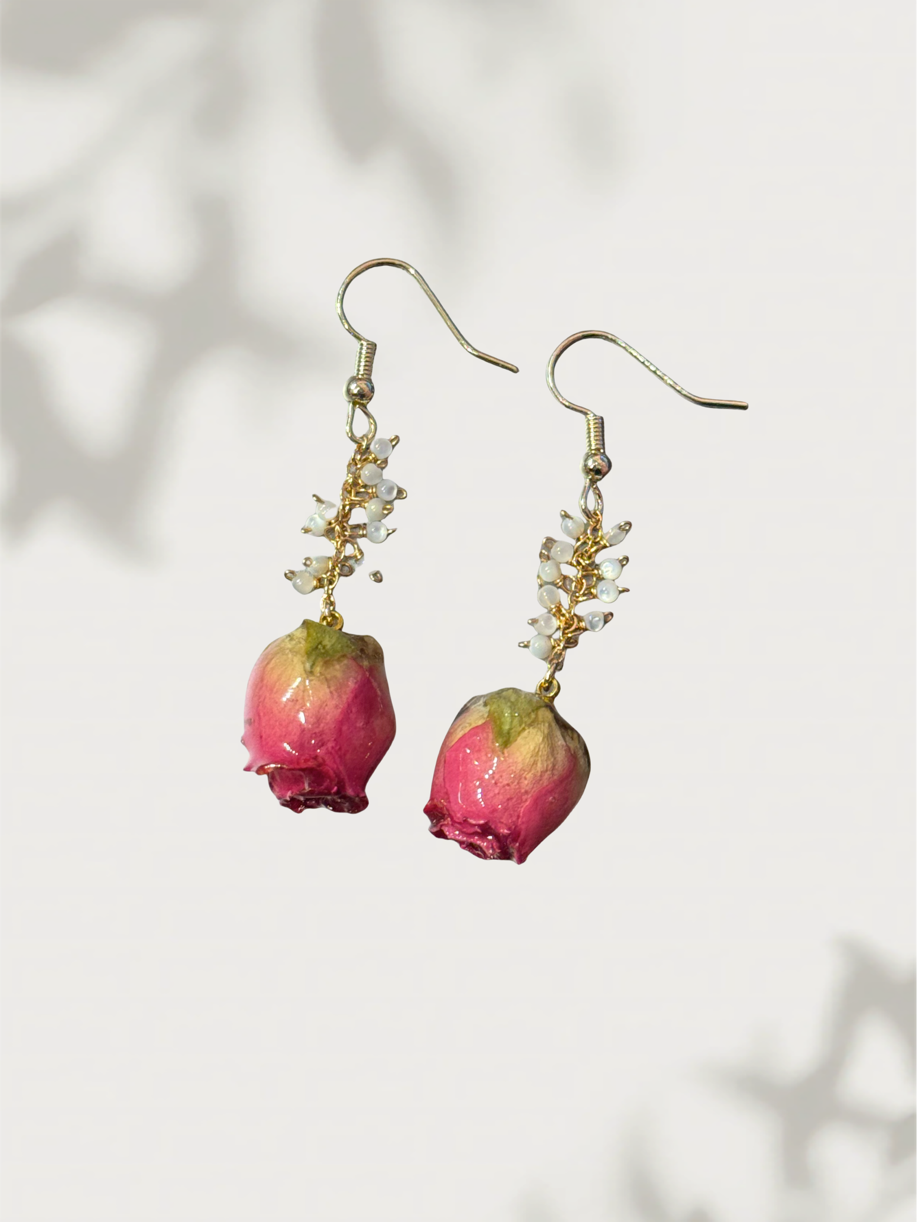 These rose earrings feature a fine string of 1.5mm natural stone beads, creating a soft, flowing silhouette that moves gently with every step. Paired with an elegant rose detail, the design feels light, feminine, and effortlessly refined.